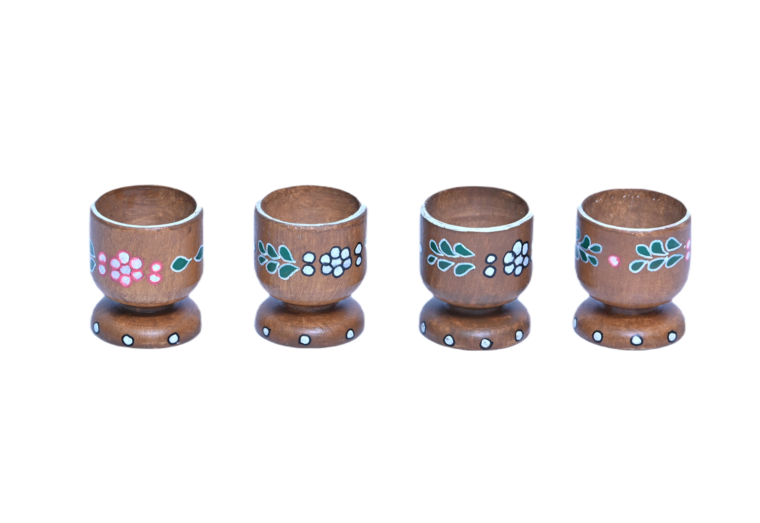 Pictură pe lemn, modelul ornamentului este aplicat pe un suport de ou cu picioruș. Culorile folosite sunt culori de bază, folosite în tehnica tradițională veche, respectiv roșu, alb, verde pe diverse fundaluri (alb, ocru, maro). Motivele sunt florale. Realizat în culori Vitex, atât fundalul cât și desenul. Pictura este lacuită cu un lac transparent satinat ce conferă un aspect mătăsos, cu durabilitate bună, chiar dacă este expusă la soare sau umiditate.