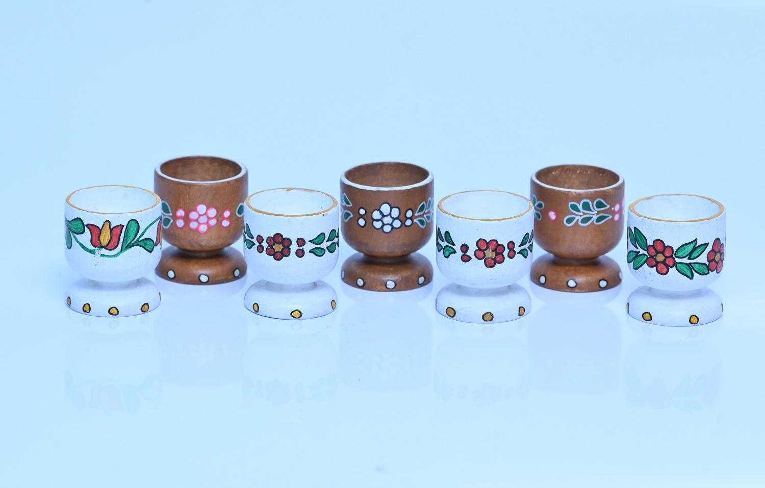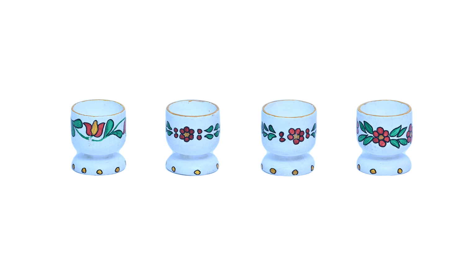 Pictură pe lemn, modelul ornamentului este aplicat pe un suport de ou cu picioruș. Culorile folosite sunt culori de bază, folosite în tehnica tradițională veche, respectiv roșu, alb, verde pe diverse fundaluri (alb, ocru, maro). Motivele sunt florale. Realizat în culori Vitex, atât fundalul cât și desenul. Pictura este lacuită cu un lac transparent satinat ce conferă un aspect mătăsos, cu durabilitate bună, chiar dacă este expusă la soare sau umiditate.